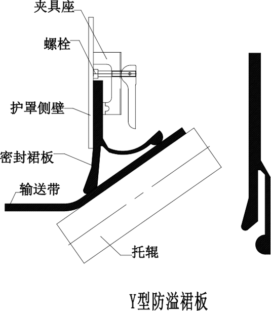 HC[200~350]型防溢裙板的特点是与皮带的相对运动方式是滑动而非摩擦运动,从而减少防溢裙板和皮带的磨损。